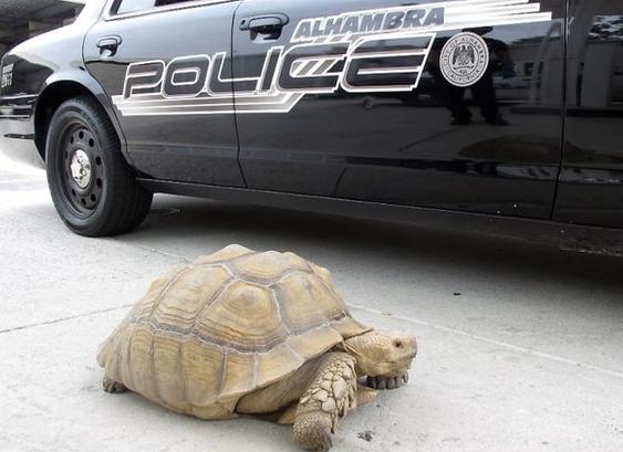 „Vėžlys bandė bėgti, tačiau mūsų policininkai gana greiti“, – po „gaudynių“ savo socialinio tinklalapio „Facebook“ paskyroje rašė Alhambros policijos departamento pareigūnai.