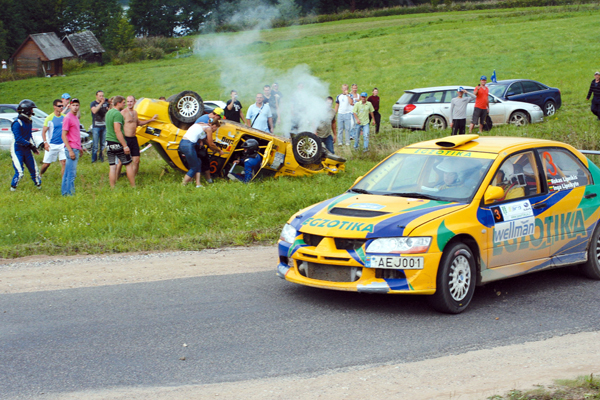 „Antrame greičio ruože įvyko labai nemalonus incidentas. Iš už posūkio išvažiavęs ir skriedamas 200 km/val. greičiu pamačiau lenktynių trasoje stovintį automobilį. Iki tragedijos buvo likęs vos vienas žingsnelis. Akimirksniu priėmiau sprendimą ir slysdami siauro keliuko kraštu vos išvengėme susidūrimo. Pasekmės galėjo būti tragiškos. Per ilgą mano lenktynininko karjerą tai buvo pirmas toks atvejis. Po šio greičio ruožo viską persvarstėme ir sulėtinome tempą. Šį savaitgalį yra mano vyresniosios dukros Eglės vestuvės, tad pagalvojau, kad geriau būtų vestuvės, o ne laidotuvės. Įvykus tokiam incidentui, vėliau buvo sunku susikaupti ir važiuoti maksimaliai. Juk negali žinoti, ar už kito kalniuko trasoje vėl nestovi mašina“, – organizatorių aplaidumu stebėjosi 46-erių metų lenktynininkas.
