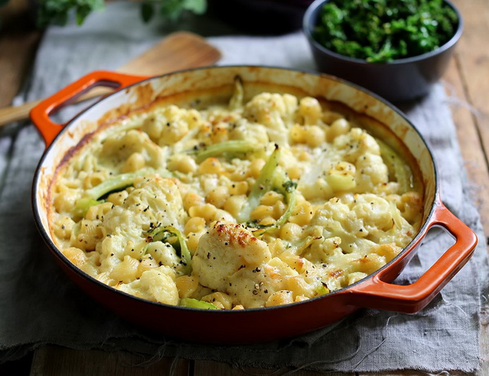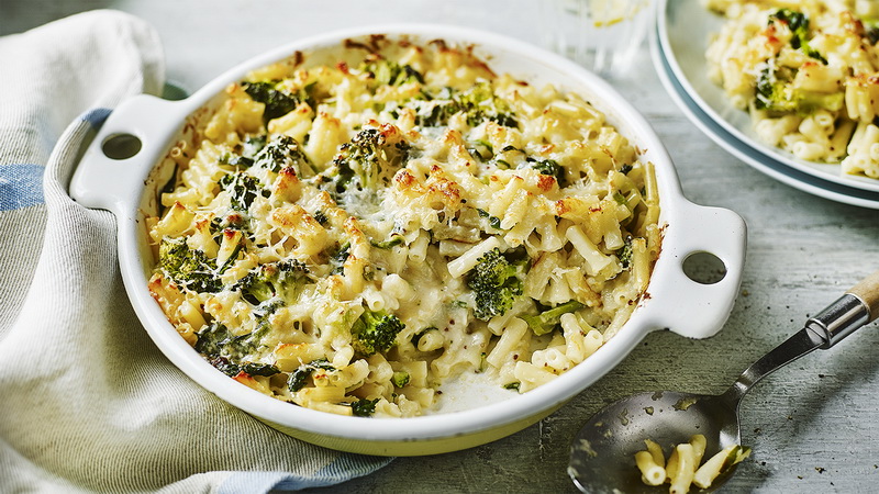 Reikės (6 porcijoms): 250 g storų makaronų, 400 g kiaulienos faršo, 500 g žiedinių kopūstų, 500 g brokolių, 1 morkos, 200 g tarkuoto sūrio, 100 g lydyto sūrelio, 100 g sviesto, druskos, pipirų, aliejaus – kepti.
