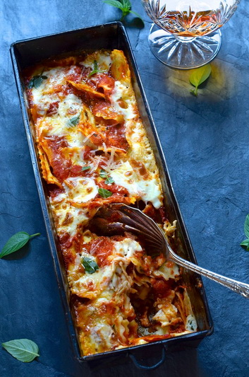 Patį viršutinį sluoksnį apibarstę sūriu, kepkite orkaitėje 20 minučių. Patiekite karštą.