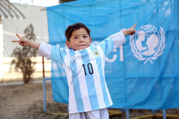 Mažasis Murtaza iš Afganistano yra didelis futbolo žvaigždės Lionelio Mesio gerbėjas – dabar jis gali džiaugtis ir marškinėliais su savo dievuko autografu.