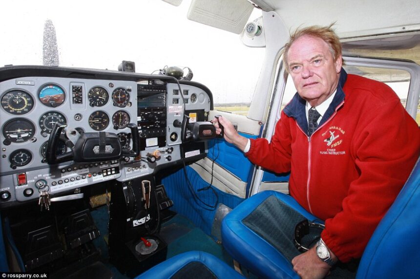 Jungtinės Karalystės garbingo amžiaus skraidymo entuziasto draugas pilotas skrydžio metu prarado sąmonę ir niekada lėktuvo nevaldžiusiam 77 metų Džonui Vildejui teko leistis pačiam.
