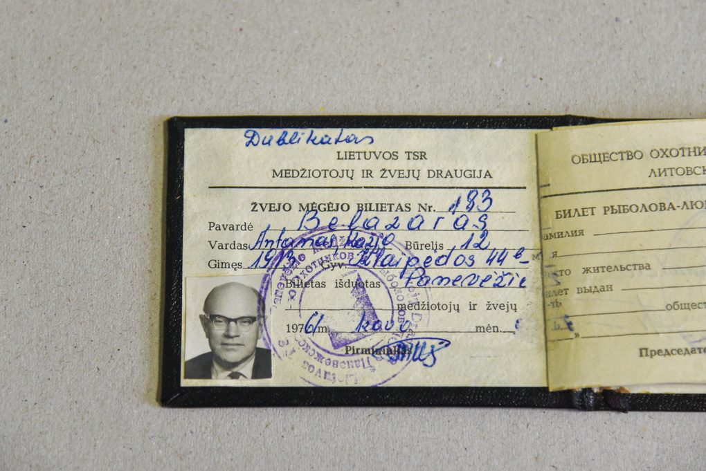 Tačiau bene labiausiai susipažįstančiuosius su A. Belazaro asmenybe, pasak R. Stružienės, nustebina vienas dokumentas, atskleidžiantis kompozitoriaus pomėgius, – jo žvejo mėgėjo bilietas.
