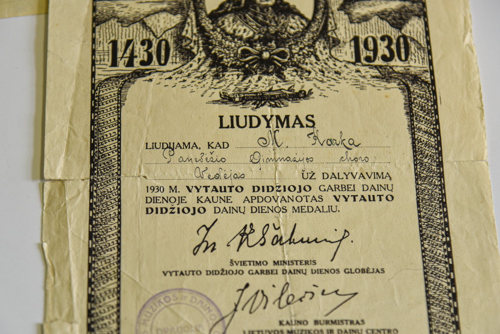 „Svarbų pėdsaką Panevėžio kultūriniame muzikiniame gyvenime paliko Mykolo Karkos vadovavimas „Dainos“ draugijos Panevėžio skyriui“, – sako fondų saugotoja.
