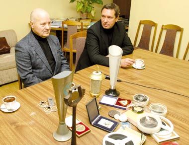 E.Ramonas (kairėje) nusprendė padovanoti dalį savo laimėjimų Panevėžio miesto