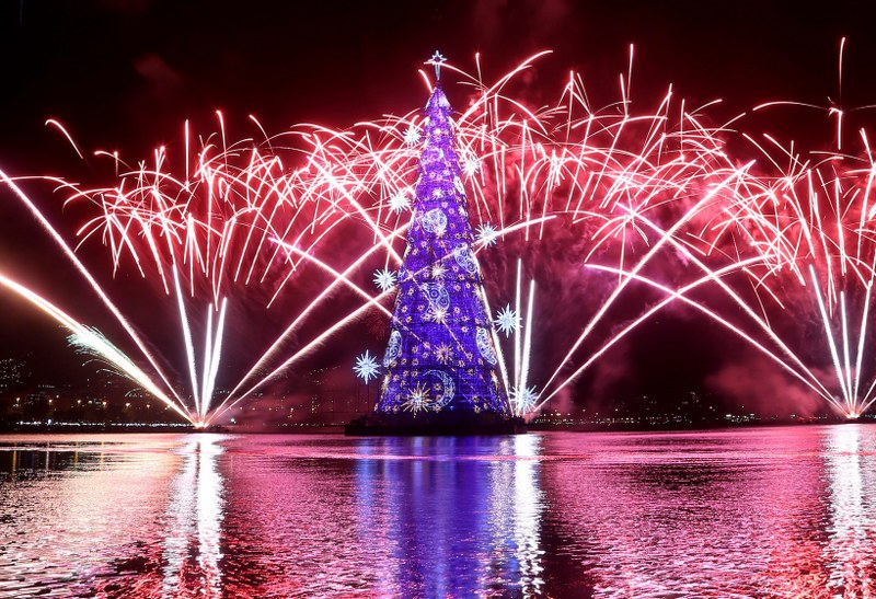 Brazilijos Rio de Žaneiro mieste šeštadienio vakarą įžiebta aukščiausia pasaulyje plaukiojanti Kalėdų eglė.