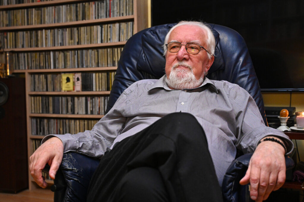Tris dešimtmečius jaunuosius menininkus Panevėžyje ugdęs muzikos pedagogas Viktoras Januškevičius su šypsena…
