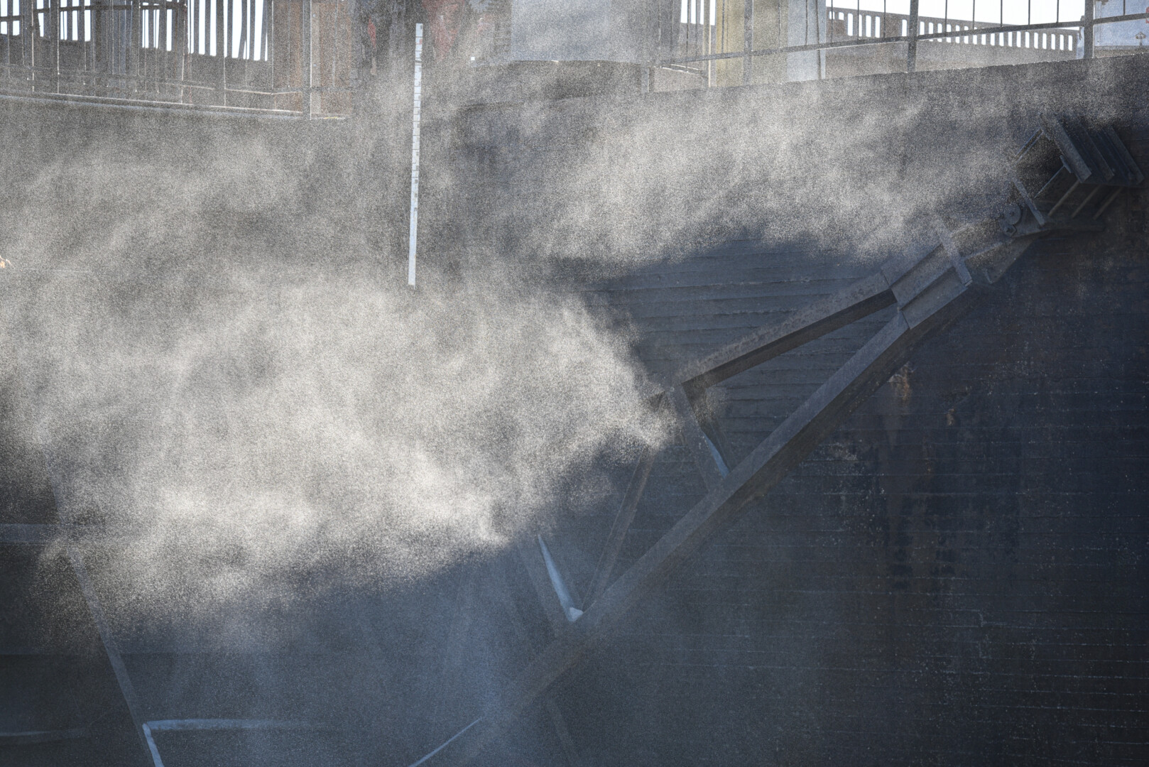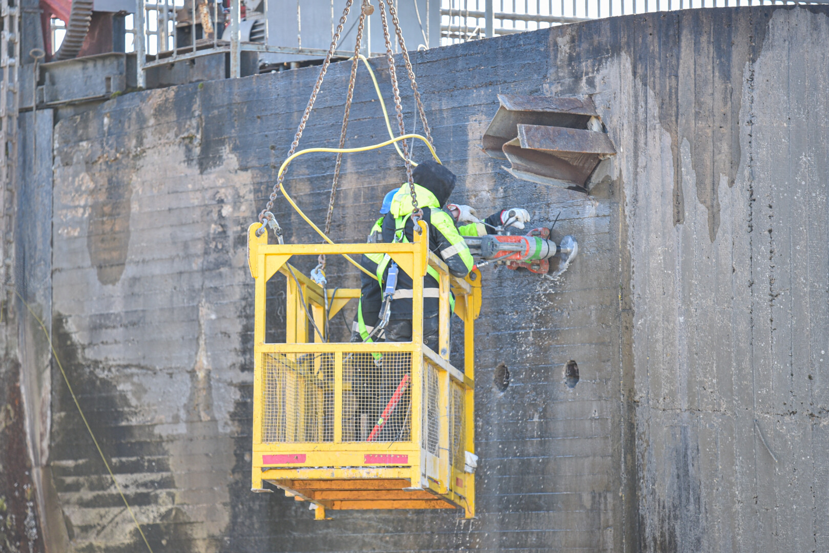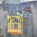 „Keltuvai, sveriantys nuo 50 iki 100 tonų, ant tilto nestatomi dėl per didelio svorio, jie dirba nuo pylimo.“