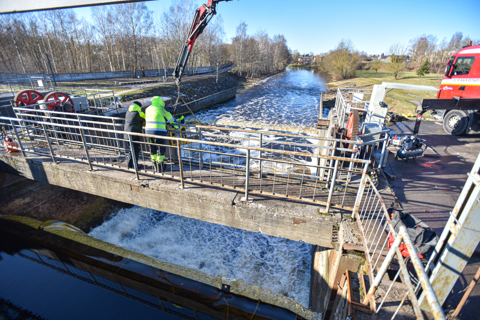 „Ekrano“ užtvankoje pradėti naujų jos įrenginių montavimo darbai. Artimiausiu metu bus sutvarkyta vien užtvanka, per ją einančio tilto remontas planuojamas ateityje.