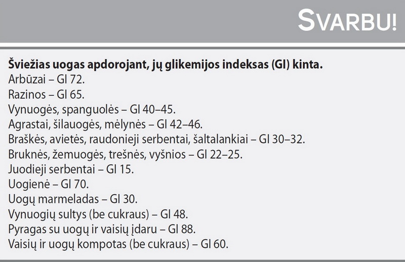Kuo didesnis uogos glikemijos indeksas, tuo smarkiau ji padidina cukraus kiekį kraujyje. Tad nors valgyti uogas, be jokios abejonės, sveikiau, nei kimšti saldumynus, pernelyg įsijautus didėja nutukimo, diabeto ir širdies kraujagyslių sistemos rizika.