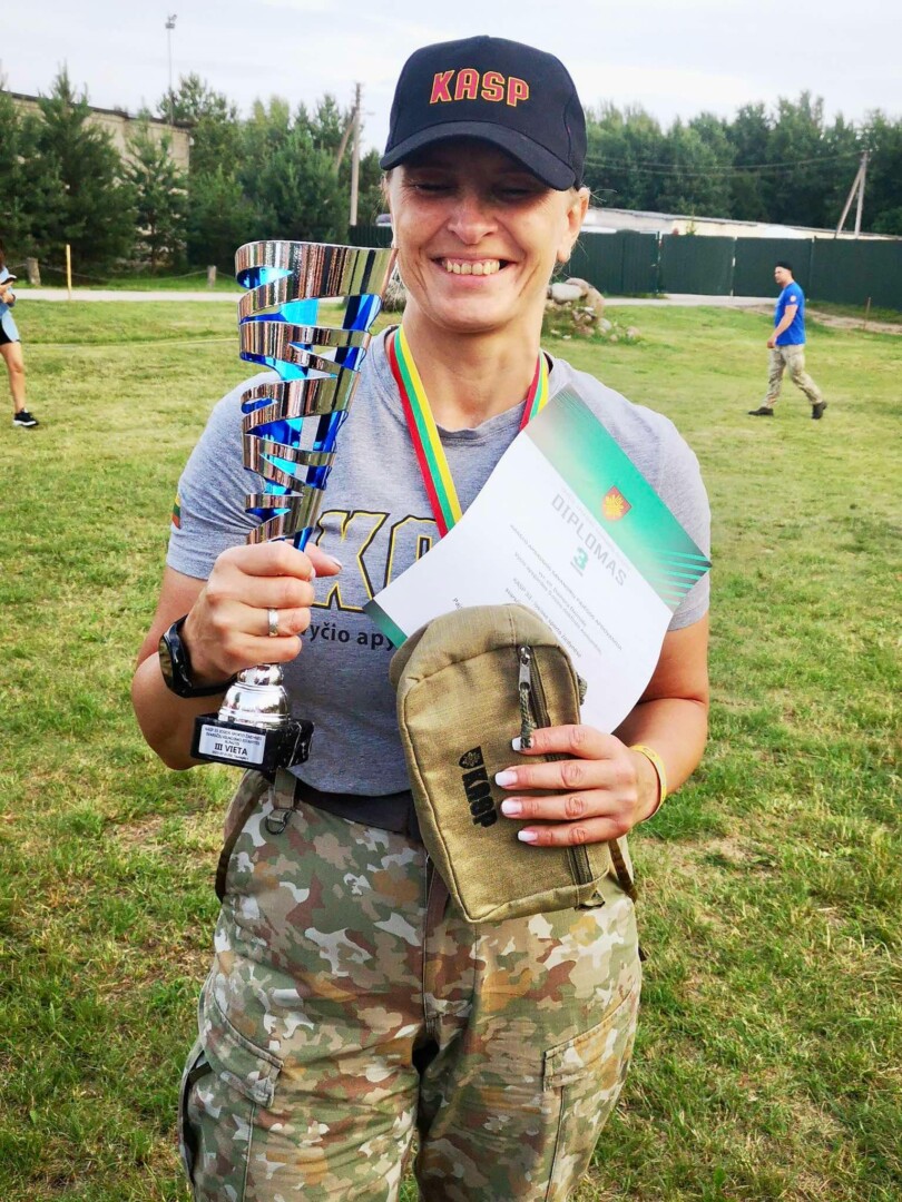„Labai dvejojau dėl savo metų – juk ant nosies buvo penkiasdešimtmetis. Bet paskatino artimieji: mano vyras, profesinės karo tarnybos karys, tarnaujantis daugiau nei dvidešimt metų, mano sūnus tarnauja jau dvylika metų, o dukra aštuonerius metus. Pabandžiau ir aš. Esu vyriausia moteris savo kuopoje“, – šypsosi panevėžietė.