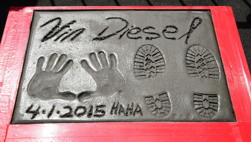 Kino juostų „Greiti ir įsiutę“ žvaigždė Vinas Dizelis, kurio tikrasis vardas yra Markas Sinkleris, paliko delnų ir pėdų atspaudus garsiojo teatro „TCL Chinese Theatre“ kieme, skelbia „Daily Mail“.