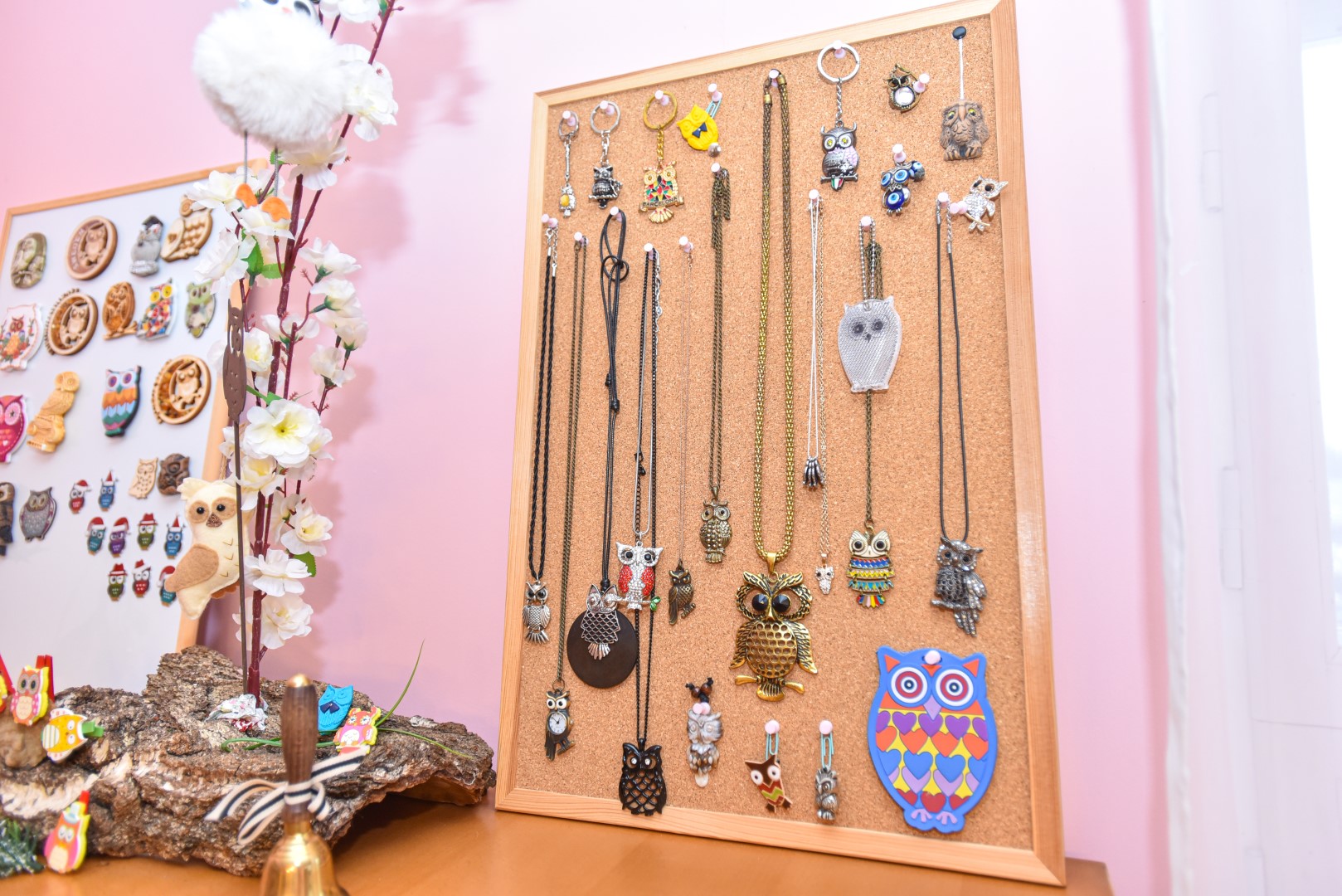 Turi ji ir auskarų su pelėdomis, bet ir šių nesisega į ausis.