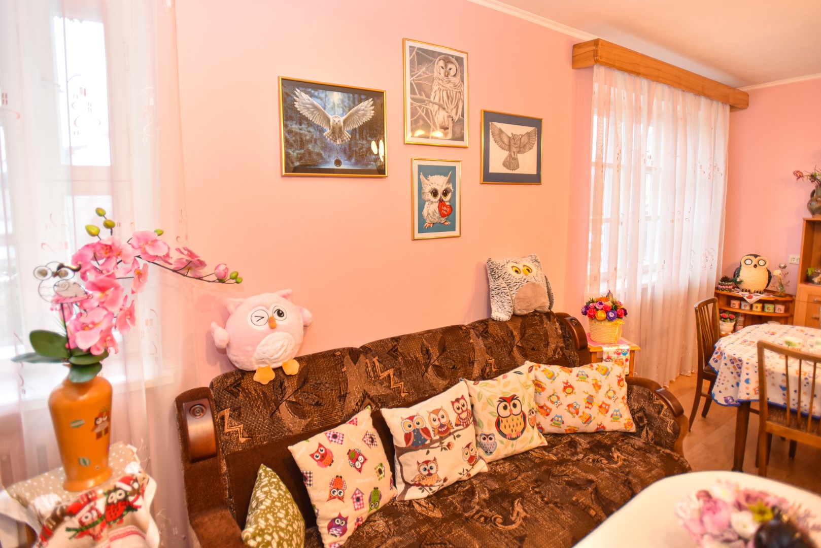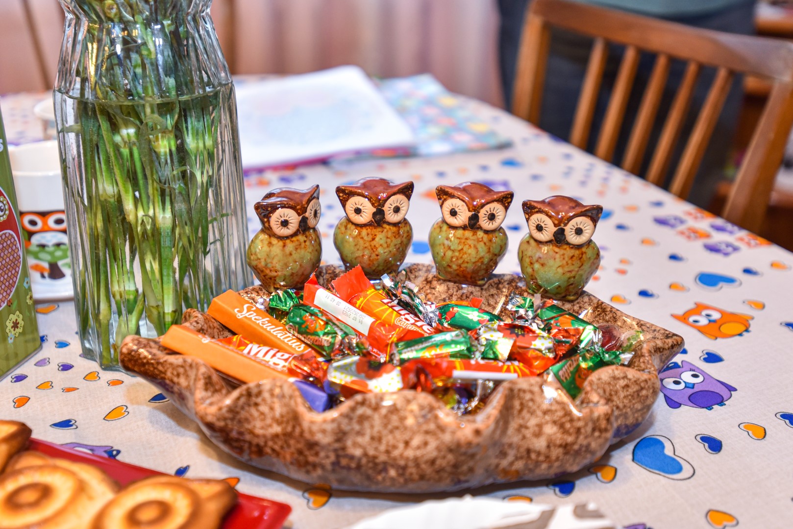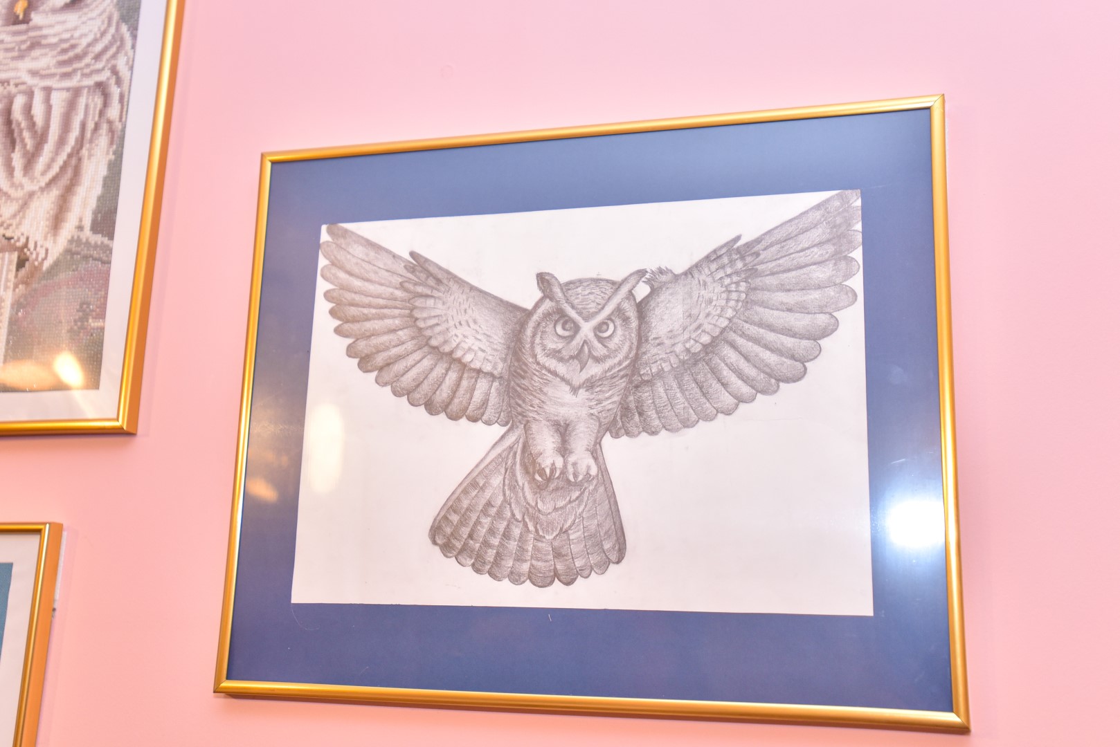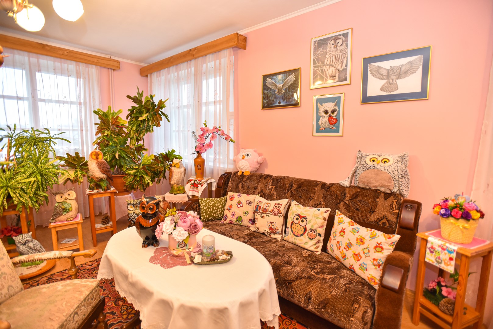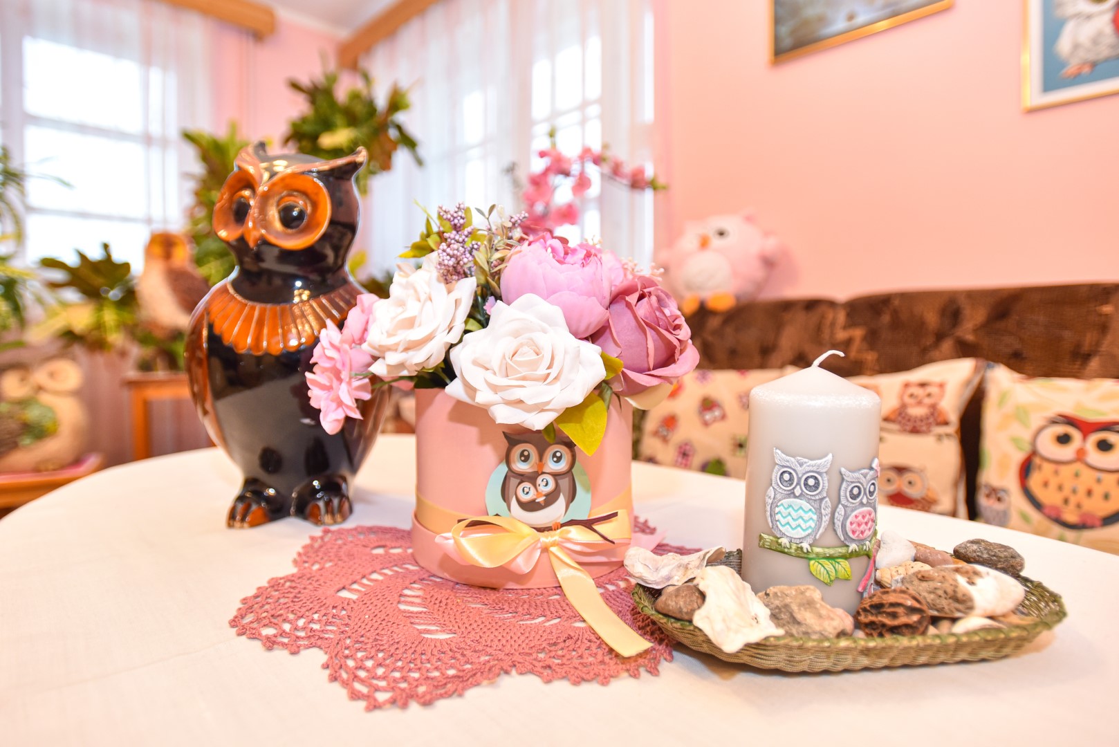 Staltiese su pelėdomis dengtas ir stalas, nuo sofos pagalvėlių žvelgia didelės pelėdų akys, kilimas – taip pat pelėdos formos. Pasidžiaugė Sofija turinti pelėdos kvepalų ir kai ko stipresnio pelėdiško, to, su laipsniais.