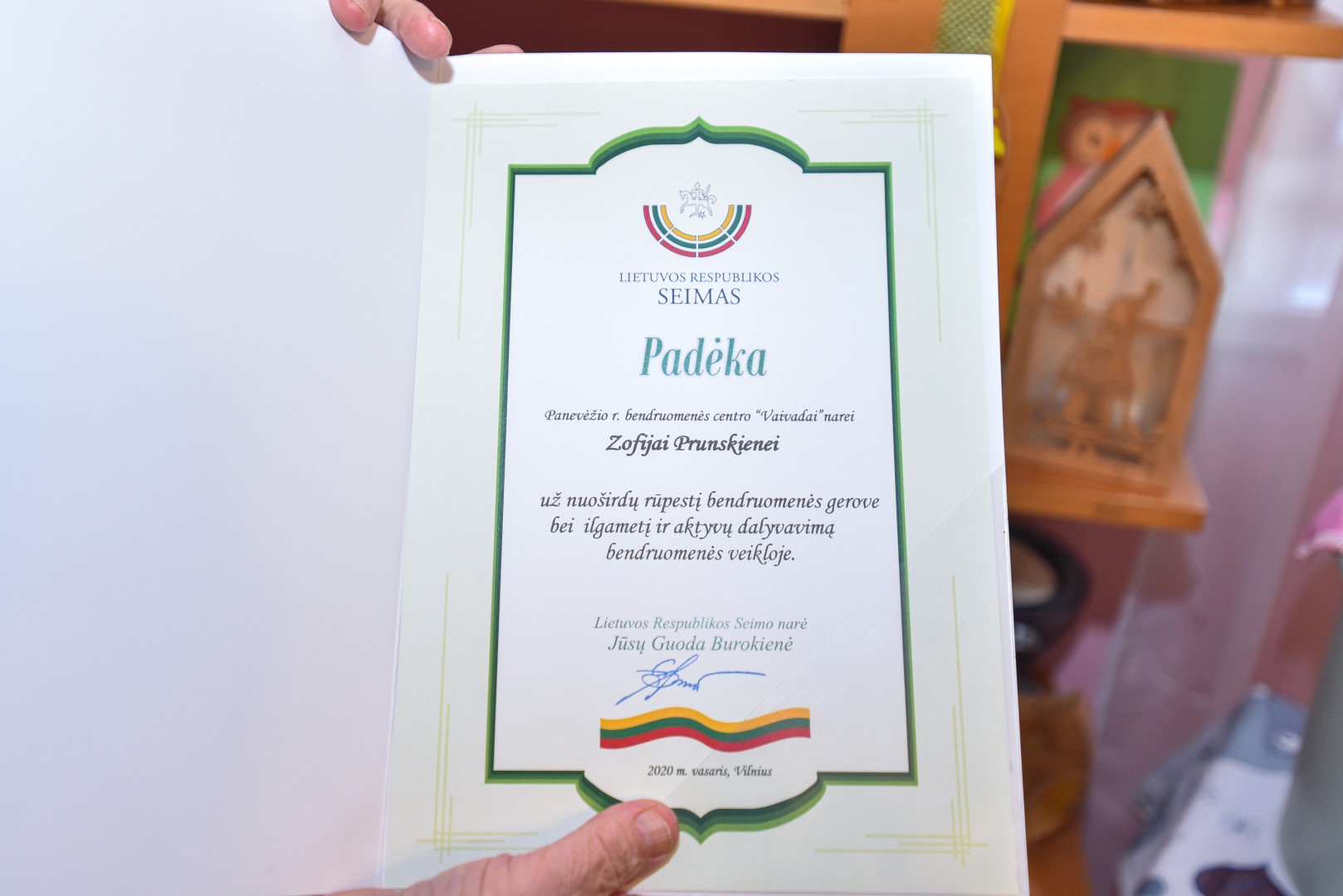 Vaivadiškė šypsosi, kad geras jos darbas fabrike buvęs įvertintas – gavo apdovanojimų ir netgi buvo aprašyta laikraštyje.