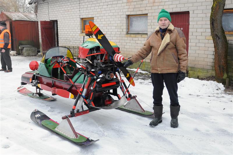 P. Ginkevičius vasaras leidžia garaže konstruodamas aeroroges, o žiemą, iškritus sniegui, jas išbando. U. Mikaliūno nuotr.