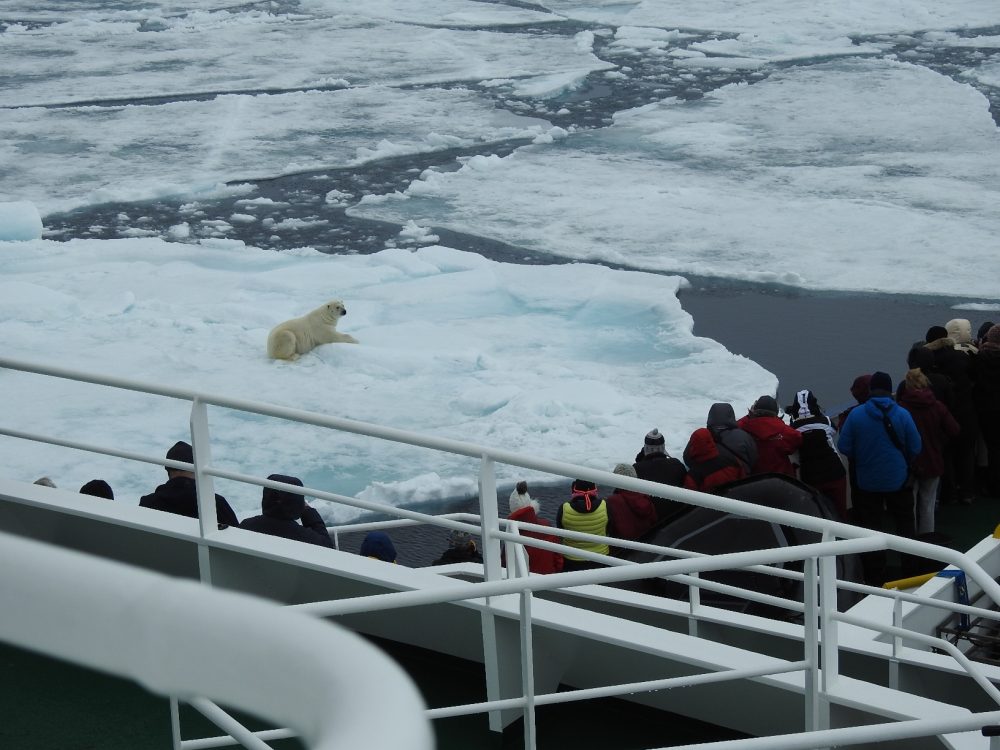 Anot laivavedžio, dėl laukinėje gamtoje tykančių pavojų keliautojus poliariniuose žemynuose visuomet lydi specialiai išmokyti gidai, kurie turi ginklų savigynai ir išmano, kaip elgtis kilus pavojui. Baltieji lokiai – didžiausi pasaulyje sausumos plėšrūnai – dažniausiai tiesiog saugiai stebimi iš laivo.
