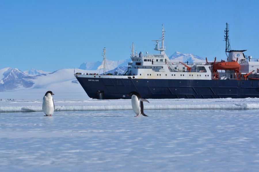 Pasak laivavedžio, norint prasiskverbti iki itin atokių, ledynuose tarsi įkalintų vietovių, į pagalbą tenka pasitelkti netgi sraigtasparnį, kuris laikomas specialiame laive „Ortelius“ įrengtame angare. Dažniausiai jis kyla, kai atsiranda norinčiųjų pamatyti didžiųjų slapukų – bemaž 45 kilogramus sveriančių imperatoriškųjų pingvinų gyvenimą.