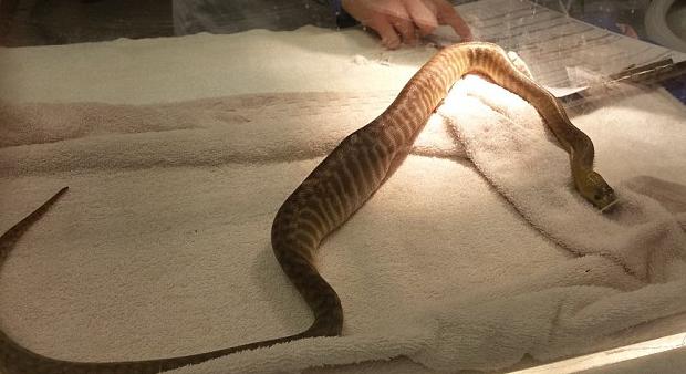 Adelaidėje namuose auginamam pitonui buvo atlikta neįprasta operacija – chirurgui teko ištraukti atsitiktinai roplio prarytas žnyples.